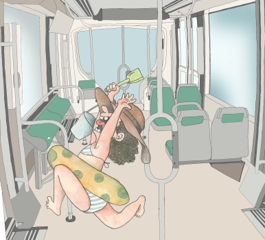 Estem tancats al tramvia. Se senten els rugits dels animals del zoo. Colpejo amb força el vidre que em separa de la conductora que resta immòbil, inclinada cap endavant. La cabellera tapa els botons de control.
